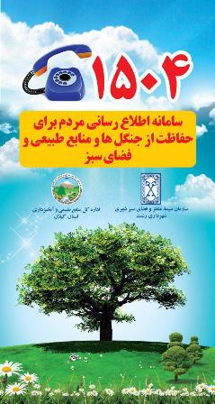 به گزارش روابط عمومی اداره کل منابع طبیعی و آبخیزداری استان گیلان، تهیه و نصب لوگوی سامانه 1504 در لایت باکس های مستقر در مناق پرتردد رشت، طی تفاهم نامه همکاری منعقده سازمان سیما، منظر و فضای سبز شهرس شهرستان رشت با اداره کل منابع طبیعی و آبخیزداری استان گیلان آغاز گردید.