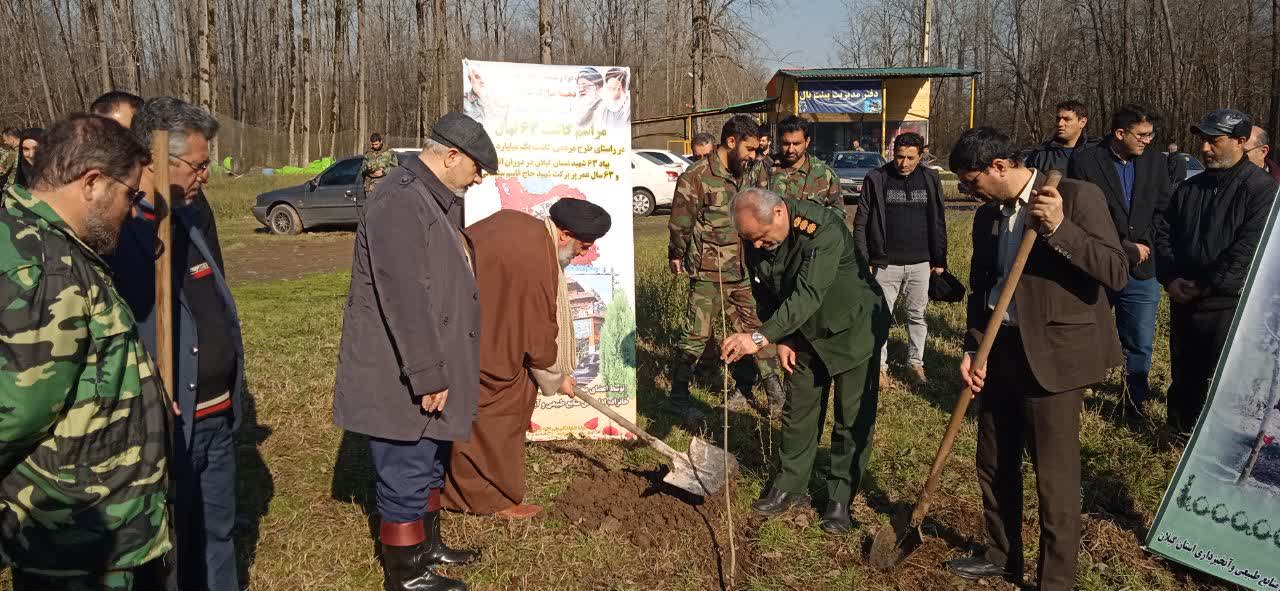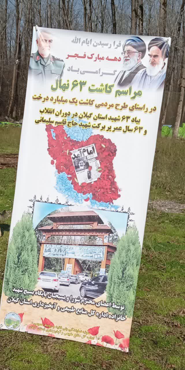اجرای پویش طرح مردمی کاشت یک میلیارد درخت در پارک جنگلی سراوان به گزارش روابط عمومی اداره کل منابع طبیعی وآبخیزداری استان گیلان به مناسبت ایام الله دهه فجر انقلاب اسلامی ایران وهمچنین به منظور ادای احترام به مقام شامخ 63شهید دوران انقلاب اسلامی وهمچنین 63سال عمر با برکت سردار بزرگ اسلام حاج قاسم سلیمانی مراسم پویش طرح مردمی کاشت یک میلیارد درخت با حضور سرهنگ احمد ابراهیمی رئیس سازمان بسیج سازندگی استان گیلان ،حجت الاسلام والمسلمین سید باقر احمدی مسئول دفتر حوزه نمایندگی ولی فقیه در اداره کل منابع طبیعی وآبخیزداری استان گیلان،دکتر فریور نقوی معاون برنامه ریزی،توسعه مدیریت ومنابع ، روسای ادارات ستادی وشهرستانی وجمعی از کارشناسان ونیروهای یگان حفاظت اداره کل منابع طبیعی وآبخیزداری استان گیلان در پارک جنگلی سراوان شهرستان رشت برگزار شد.